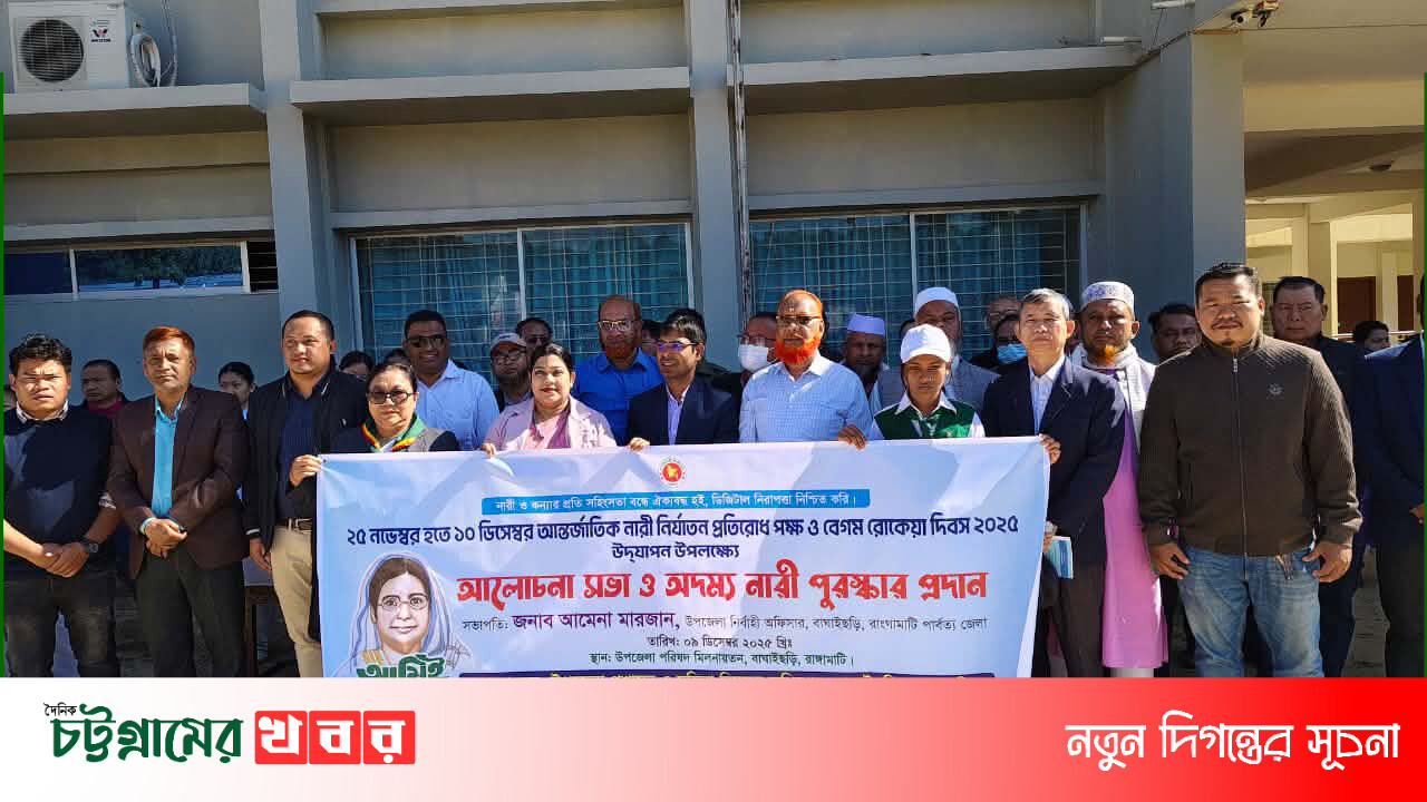 বাঘাইছড়িতে যথাযোগ্য মর্যাদায় বেগম রোকেয়া দিবস পালিত চট্টগ্রামে আধিপত্য বিস্তারের জেরে যুবককে কুপিয়ে হত্যা: ওয়ারেন্টভুক্ত আসামি গ্রেপ্তার চ.উ.ক কাজির দেউরী কাঁচা বাজার ব্যবসায়ী সমিতির বার্ষিক সাধারণ সভা অনুষ্ঠিত। বেগম খালেদা জিয়ার রোগমুক্তি কামনায় বাঘাইছড়িতে প্রার্থনা অনুষ্ঠিত চট্টগ্রাম মহানগরীতে হোটেল ও রেস্টুরেন্ট শ্রমিক কল্যাণ ইউনিটের দায়িত্বশীল সম্মেলন অনুষ্ঠিত অভিযাত্রী পত্রিকার উদ্যোগে বিজয় দিবসের তাৎপর্য শীর্ষক আলোচনা সভা ও গুণীজন সংবর্ধনা অনুষ্ঠিত। নারী দিবসে সফল নারী উদ্যোক্তা বিলকিস সুলতানাকে সম্মাননা প্রদান আনোয়ারায় প্রাণিসম্পদ ও ভেটেরিনারি হাসপাতালে রহস্যজনক চুরি আনোয়ারা–কর্ণফুলী নির্বাচন অফিসে ৬ ডাটা এন্ট্রি অপারেটরের কর্মবিরতি: সেবাগ্রহীতাদের দুর্ভোগ এক উপজেলায় ৩০০-র বেশি ‘সাংবাদিক’, চাঁদাবাজির হাতিয়ার প্রেস কার্ড