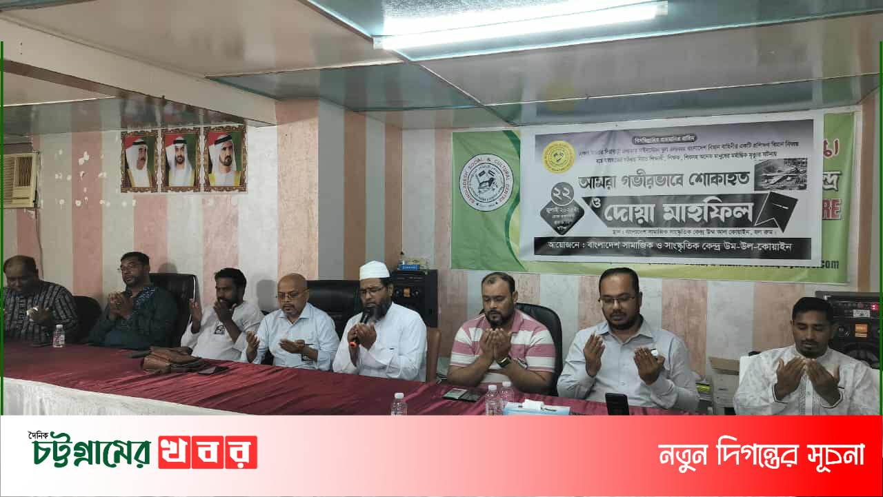 বাংলাদেশ সামাজিক ও সাংস্কৃতিক কেন্দ্র উম্মা আল কোয়াইন এর উদ্যোগে ঢাকা উওরার এলাকায় মাইলস্টোন স্কুল অ্যান্ড কলেজে বিমান বিধ্বস্ত হয়ে হতাহতের ঘটনায় নিহত শিক্ষার্থী, শিক্ষকের রুহের আত্মার মাগফিরাত কামনায় শোক সভা ও দোয়া মাহফিল অনুষ্ঠিত হয়েছে