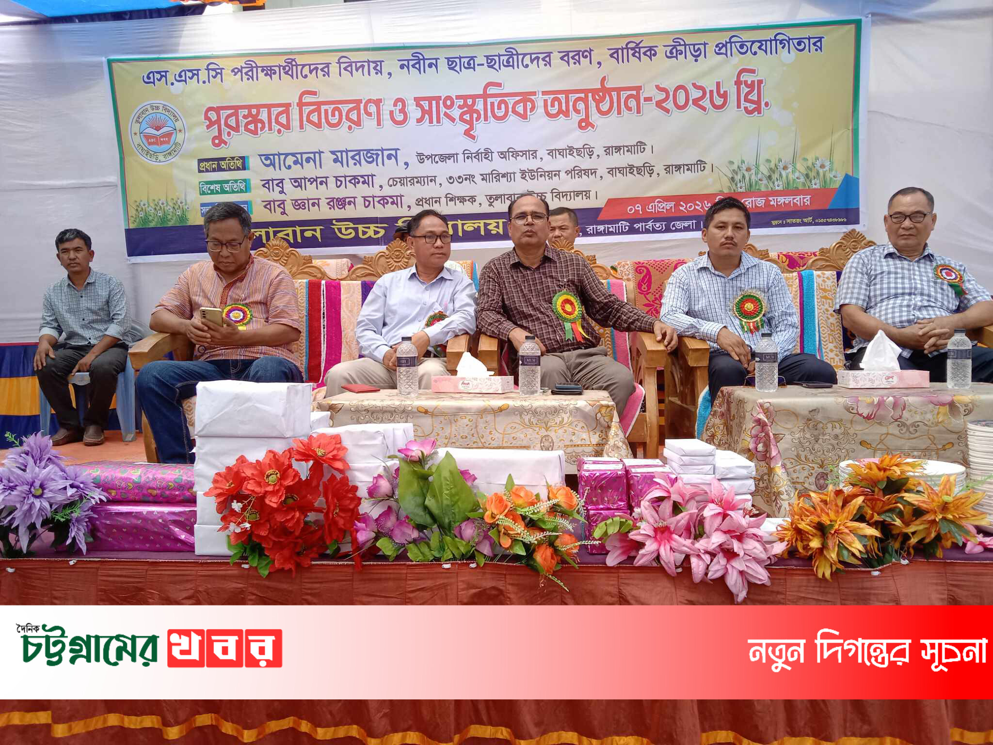 বাঘাইছড়িতে তুলাবান উচ্চ বিদ্যালয়ের এসএসসি পরীক্ষার্থীদের বিদায় সংবর্ধনা ও পুরস্কার বিতরণী অনুষ্ঠান বাঘাইছড়িতে বিজিবির অভিযানে ৭৪ লিটার অবৈধ পেট্রোল জব্দ গ্যাস সংকটে আনোয়ারার দুই সার কারখানা বন্ধ, ডিএপিএফসিএলও ঝুঁকিতে চন্দনাইশ-সাতকানিয়া (আংশিক) বৈশাখী মেলা ও সম্মিলিত বর্ষবরণ উদযাপন-১৪৩৩ কমিটি গঠিত চন্দনাইশ পৌরসভা নির্বাচনে বিএনপির মনোনয়ন প্রত্যাশী অ্যাডভোকেট রাশেদ হামিদ সাংবাদিকের বিরুদ্ধে মিথ্যা মামলার প্রতিবাদে চট্টগ্রামে সাংবাদিকদের মানববন্ধন ও প্রতিবাদ সমাবেশ বোয়ালখালী চরণদ্বীপ মডেল প্রাথমিক বিদ্যালয়ে চুরি রাঙ্গামাটিতে বাংলা নববর্ষ ১৪৩৩ উপলক্ষে ০৫ দিনব্যাপী বর্ণাঢ্য সাংস্কৃতিক অনুষ্ঠানের শুভ উদ্বোধন। বাকলিয়া থানা পুলিশের অভিযান ৪ মামলার পলাতক দুর্ধর্ষ আসামি শওকত আলী গ্রেফতার বোয়ালখালীতে অনূর্ধ্ব-১৭ আন্তঃস্কুল ফুটবল টুর্নামেন্ট উদ্বোধন