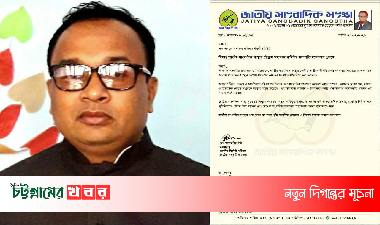 নিজস্ব প্রতিবেদক বায়েজিদ বোস্তামীতে দখলচেষ্টার অভিযোগে কয়েকজনের বিরুদ্ধে অভিযোগ চট্টগ্রাম নগরীর বায়েজিদ বোস্তামি থানায় আদালতের বিচারাধীন সম্পত্তিতে জোরপূর্বক নির্মাণচেষ্টার অভিযোগে একটি সাধারণ ডায়েরী দায়ের করা হয়েছে।জিডি নং ১০৬৮,তারিখ ১৭/০২/২০২৬।